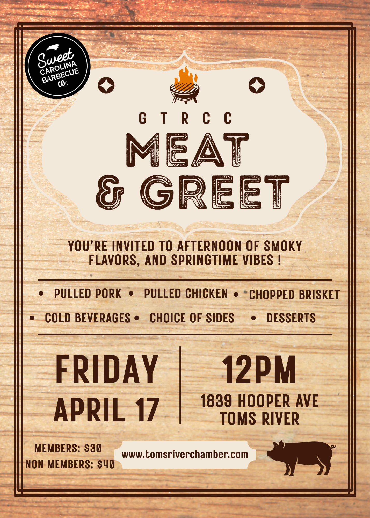Join us for a networking luncheon which includes BBQ, 2 sides, cold drinks & dessert!