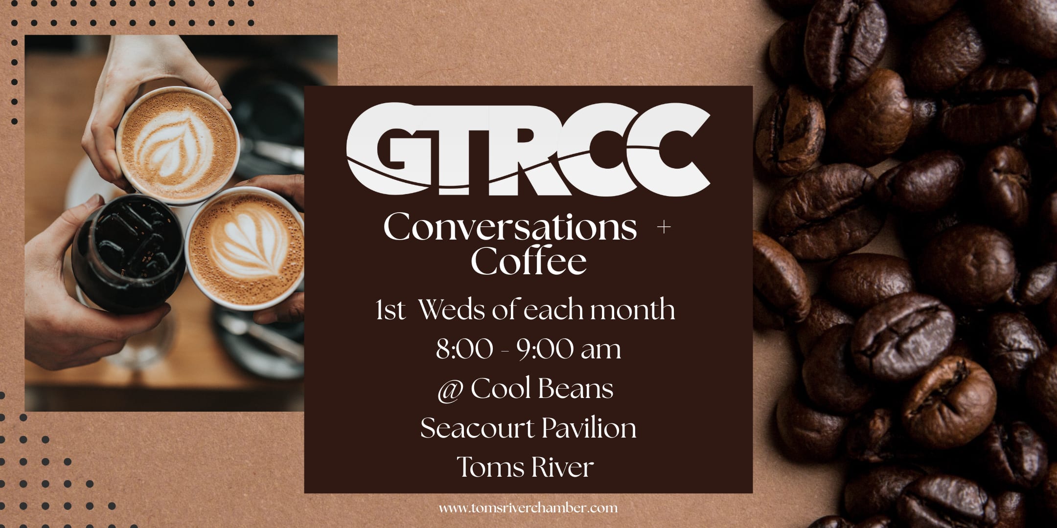 Informal get-together on the 1st Wednesday of the month from 8-9am at Cool Beans Coffee House in Toms River. This is a time for new, existing, and future GTRCC members to grab a cup of coffee and have a conversation about their business goals with us and one another. It’s also a great opportunity for us to answer any questions you may have about our organization.